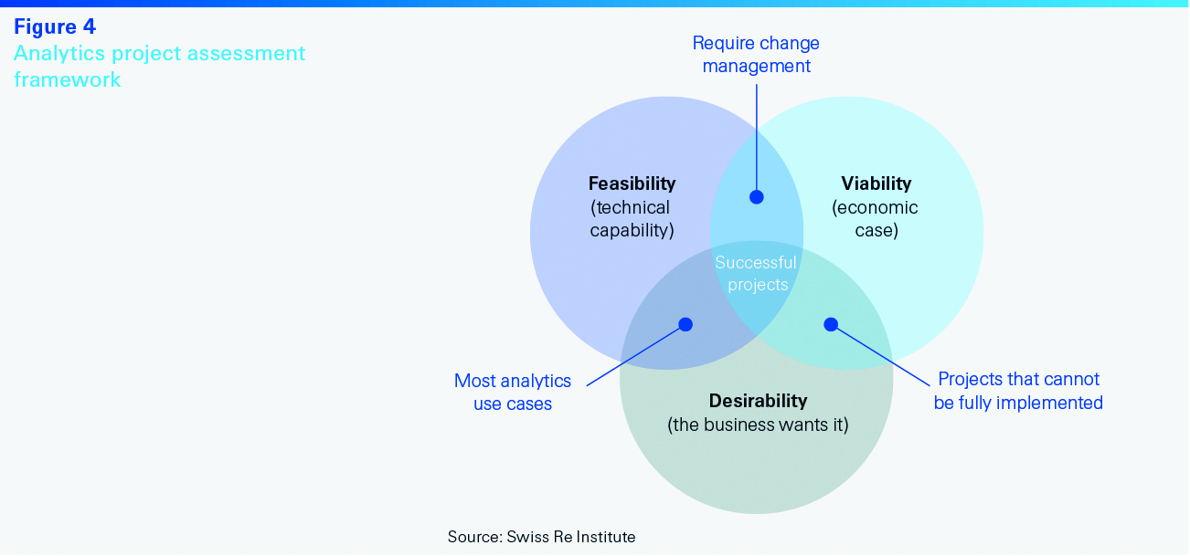 Most insurers aim for a success rate of one-third in operationalising pilots. Too high a success rate may mean that the use cases are not challenging enough.